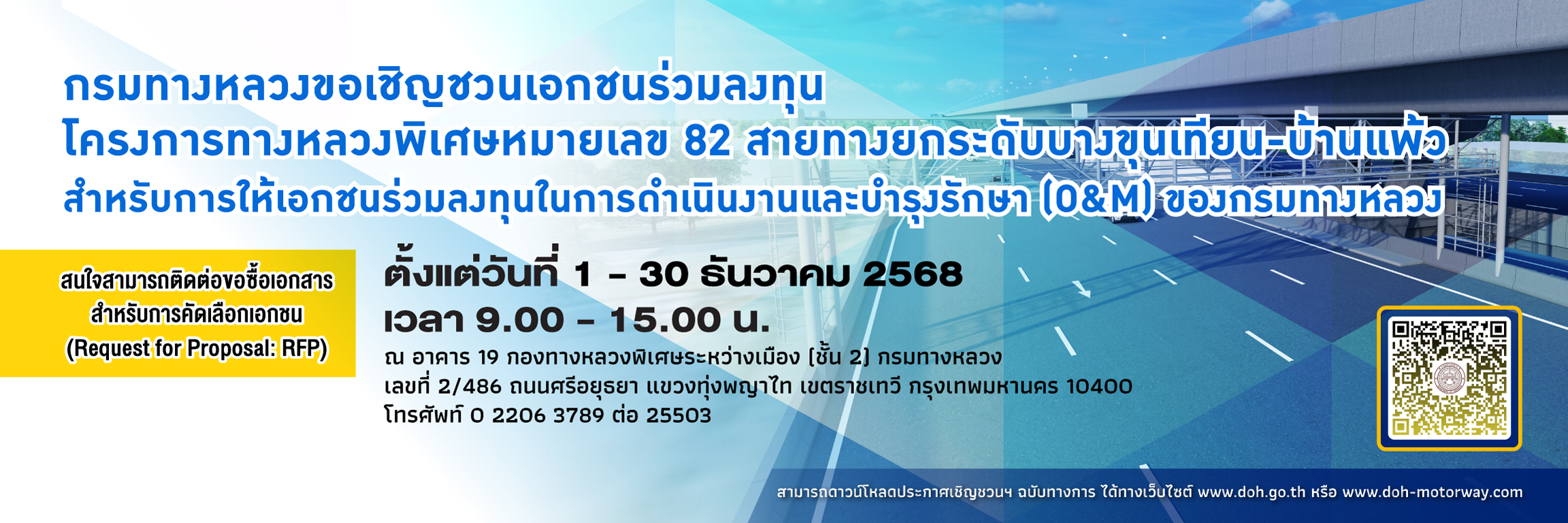 กระทรวงคมนาคมโดยกรมทางหลวงได้รับอนุมัติให้ดำเนินโครงการร่วมลงทุนสำหรับการดำเนินงานและบำรุงรักษา (O&M) โครงการทางหลวงพิเศษหมายเลข 82 สายทางยกระดับบางขุนเทียน-บ้านแพ้ว ตามมติคณะรัฐมนตรี เมื่อวันที่ 13 ธันวาคม 2565 เพื่อเร่งแก้ไขปัญหาการจราจรติดขัดบนถนนพระราม 2 ซึ่งมีมาอย่างยาวนาน และเพื่อเป็นอีกหนึ่งโครงข่ายคมนาคมขนส่งทางถนนที่มีมาตรฐานสูงในการเพิ่มประสิทธิภาพการจราจรและเสริมศักยภาพการพัฒนาทางเศรษฐกิจของพื้นที่โดยรอบโครงการและพื้นที่ต่อเนื่อง